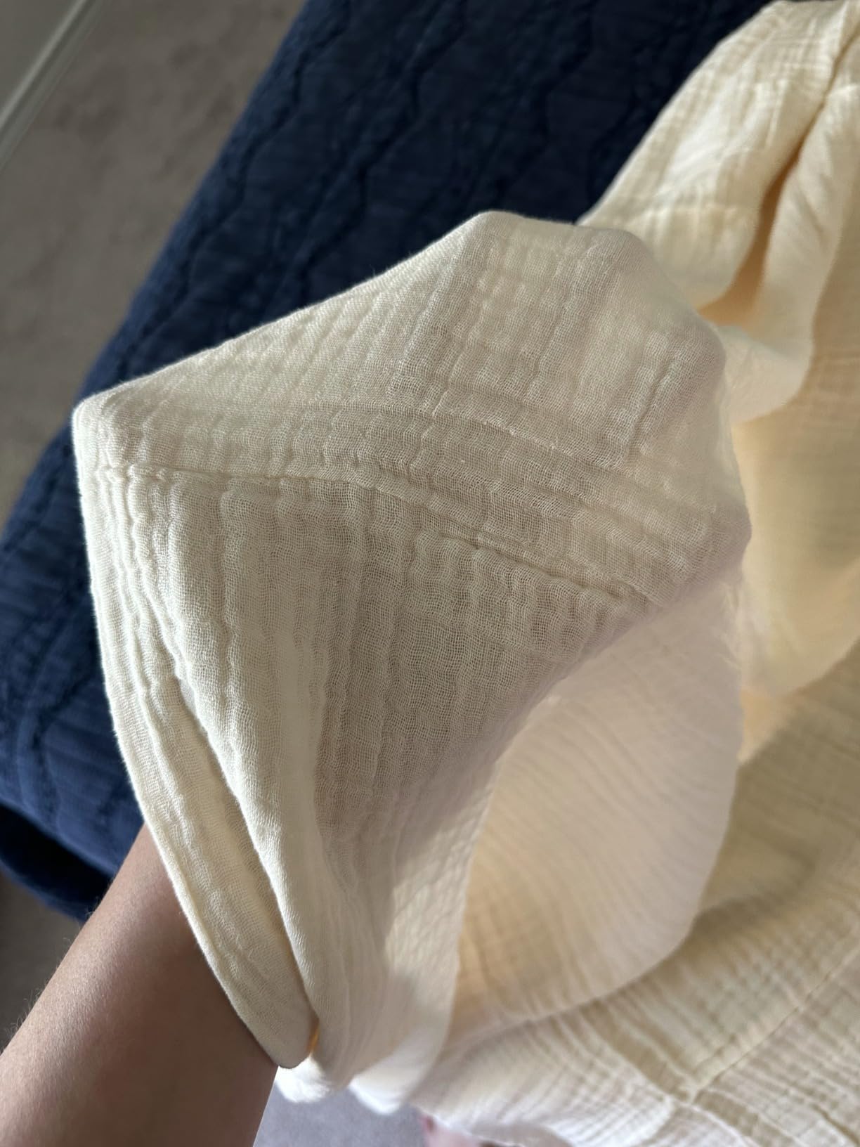 With its clean, natural look, the muslin blanket pairs effortlessly with any décor. Available in calming, neutral shades, it adds a subtle elegance to your space while staying practical enough for daily use.